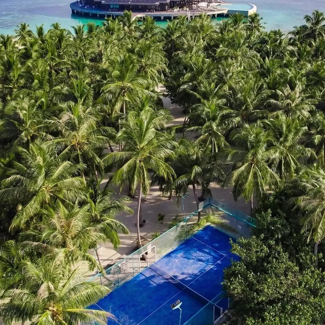 Imagine playing padel on a paradise island surrounded by turquoise waters… It’s possible at Kudadoo Maldives Private Island! This idyllic setting makes this court a real “Padel in Paradise”. If you dream of an unforgettable match with palm trees as a backdrop, this is the place for you.