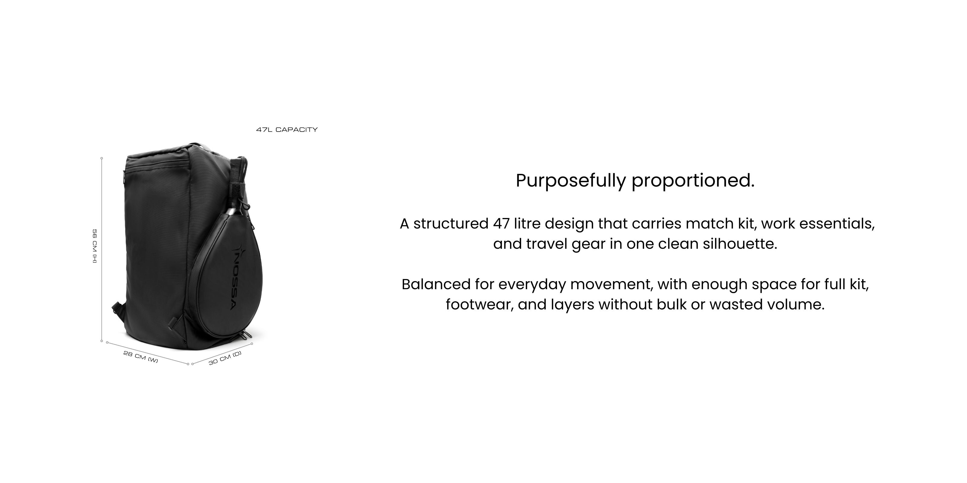 Spacious 47L capacity for full match day gear and travel essentials.