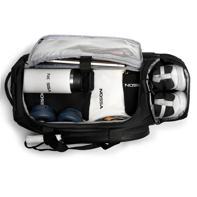 Both. It is designed to properly carry padel kit, but the clean shape and layout mean it works just as well for everyday use, commuting, or travel without looking like a bulky sports bag.